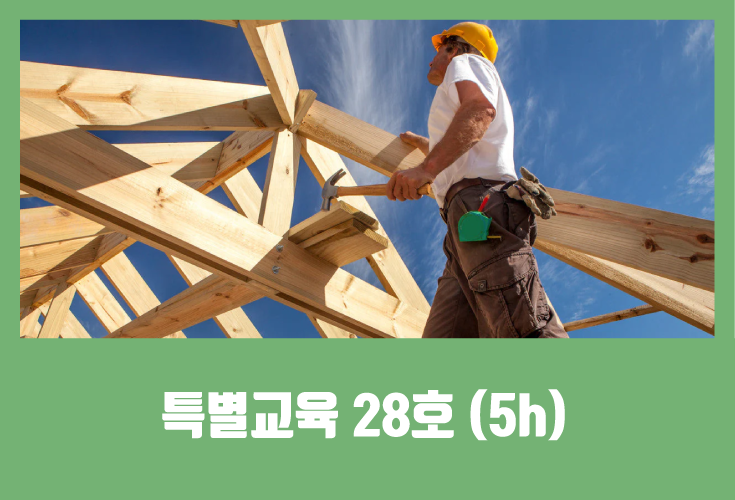 28. 처마 높이가 5m 이상인 목조건축물의 조립, 지붕 또는 외벽 밑에서의 설치작업