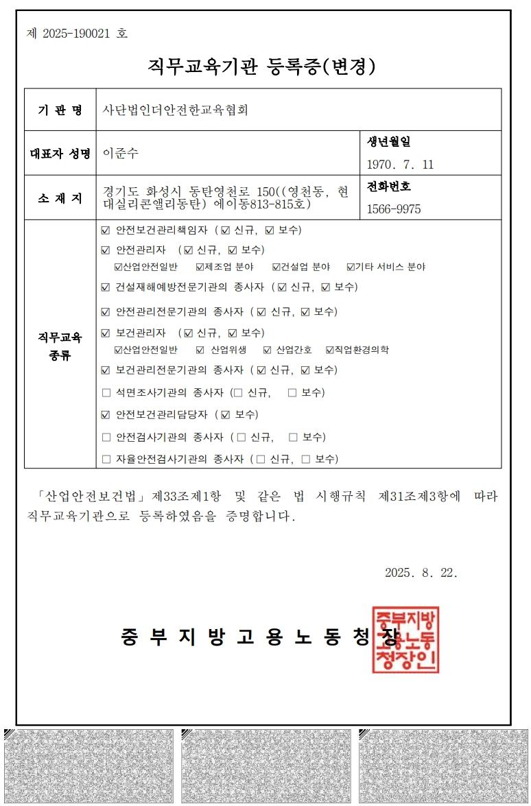- 근로자안전보건교육기관 등록증